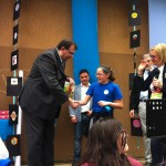 Finalmente il grande giorno è arrivato! Sabato 16 aprile, tutti gli alunni e le alunne della scuola dell’infanzia, della primaria e della scuola secondaria, con i loro genitori e i loro insegnanti, hanno condiviso insieme una giornata memorabile dal titolo “Insieme… con energia”. Dalle ore 8.30 alle ore 16.00, il plesso di via Tommaso Grossi è stato un luogo pieno di mostre, presentazioni, esperimenti, esibizioni, canti e balli sul tema “energia”, trattando argomenti come il risparmio energetico e l’uso delle fonti di energia rinnovabili. Ogni angolo della scuola era ricco di lavori e prodotti realizzati dalle varie classi. Alcune classi hanno realizzato lavori di gruppo e presentato il loro prodotto ad un pubblico di genitori attento e interessato. E’ intervenuto il Sindaco di Rho, dott. Pietro Romano, l’Assessore all’Ambiente dott. Gianluigi Forloni, l’Assessore all’Istruzione Alessia Bosani, accolti dal nostro Dirigente Scolastico prof.ssa Sandra Moroni che ha ringraziato pubblicamente per il patrocinio che l’Amministrazione Comunale ha accordato a questa iniziativa. All’interno della manifestazione si sono svolte tre premiazioni: le classi virtuose del concorso “Scuola Riciclona” e i vincitori dei concorsi grafici “Disegniamo l’energia” (riservato agli alunni della scuola dell’Infanzia, classi I e II scuola Primaria) e “Un logo per la scuola”.