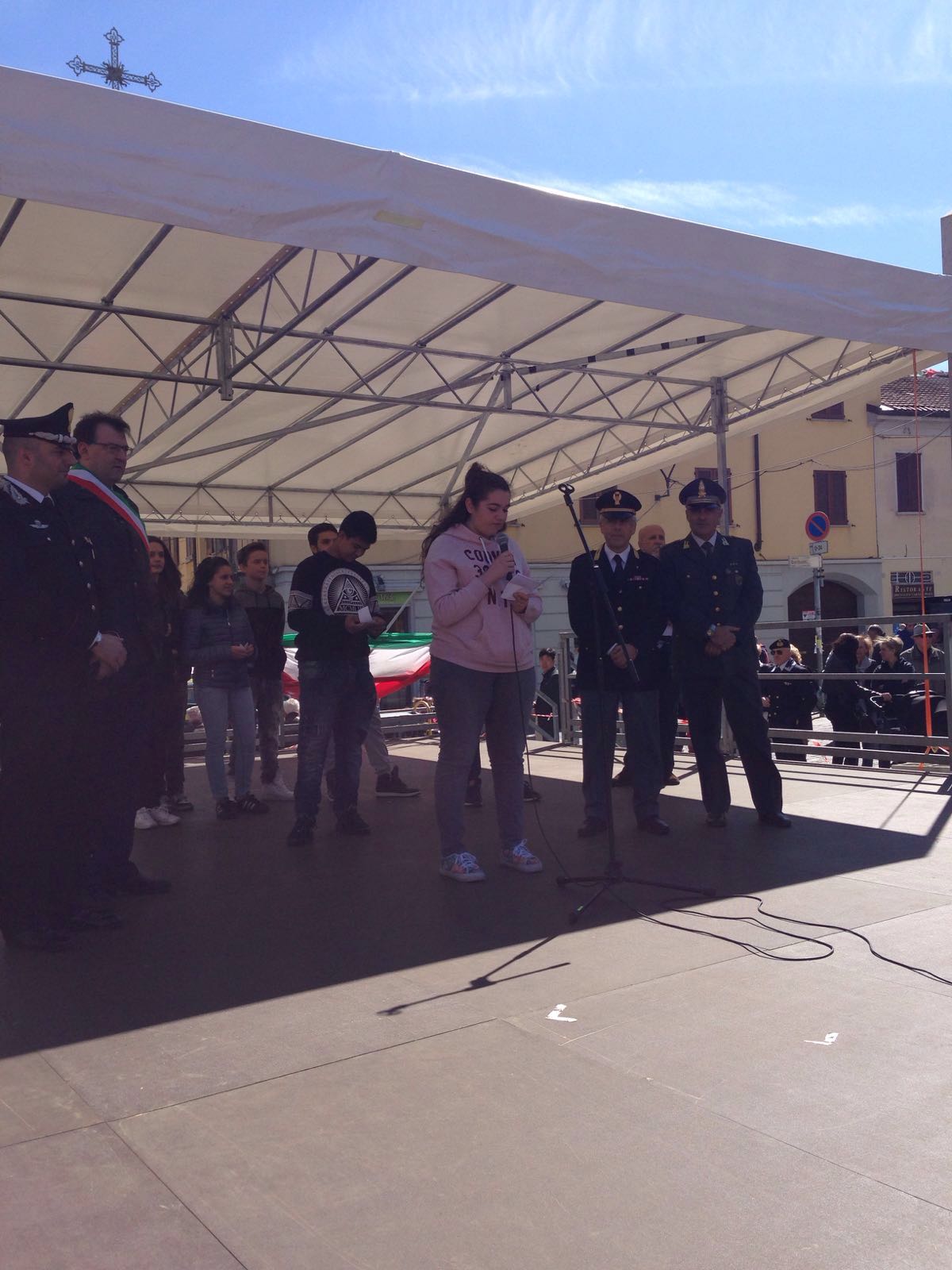 I nostri alunni hanno aperto le celebrazioni leggendo sul palco alcune loro riflessioni sul significato della Resistenza e sul coraggio dei Partigiani, dimostrando particolare interesse per questo periodo della nostra storia.