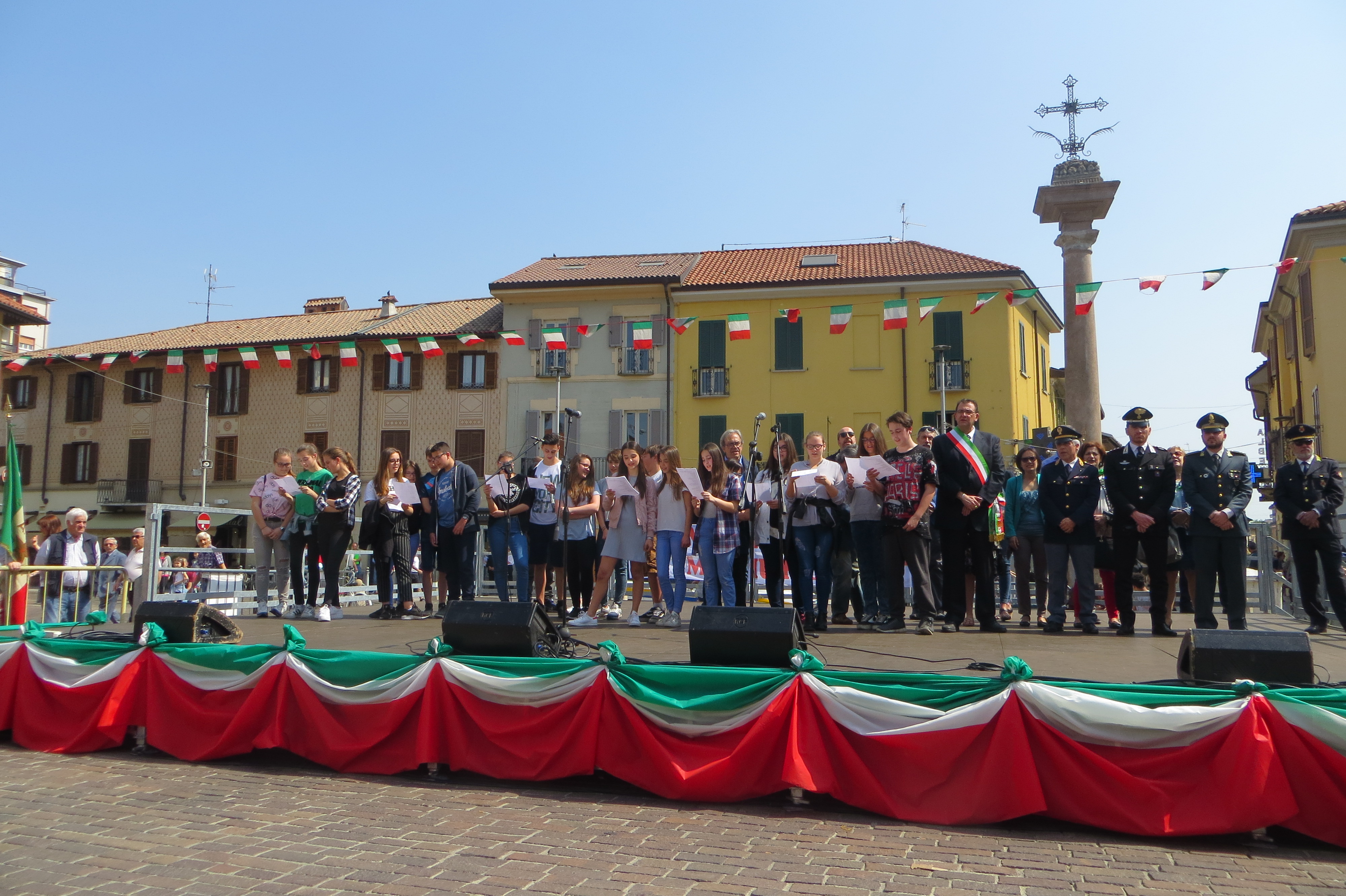 Gli alunni della scuola secondaria alla manifestazione del 25 aprile, Festa della Liberazione