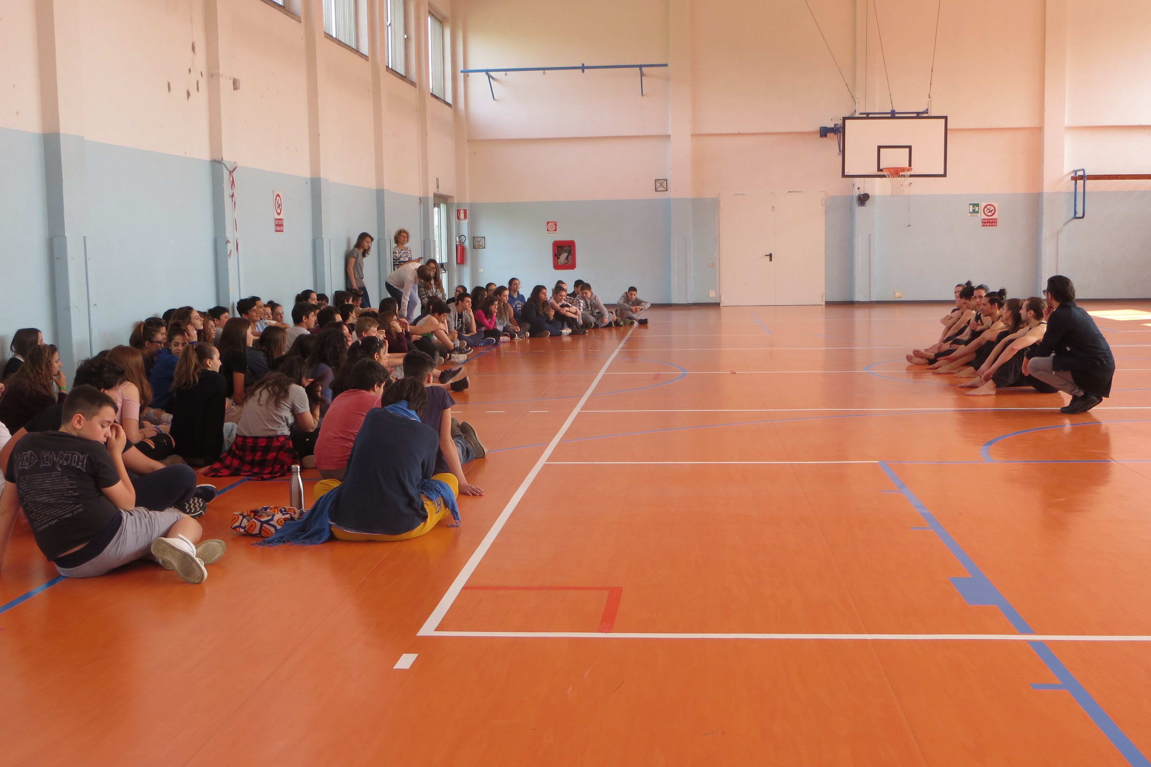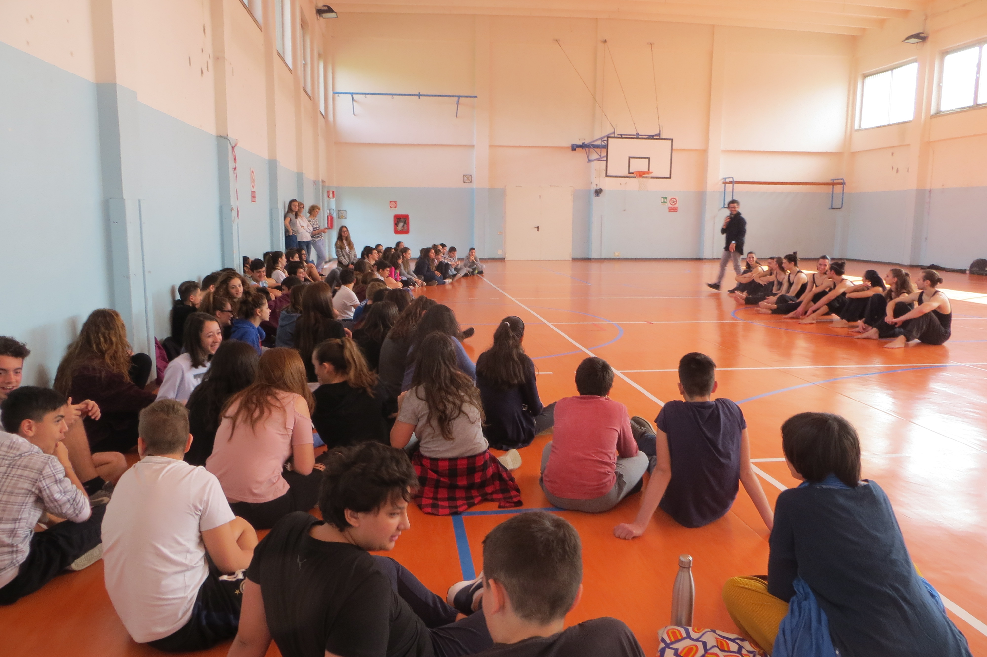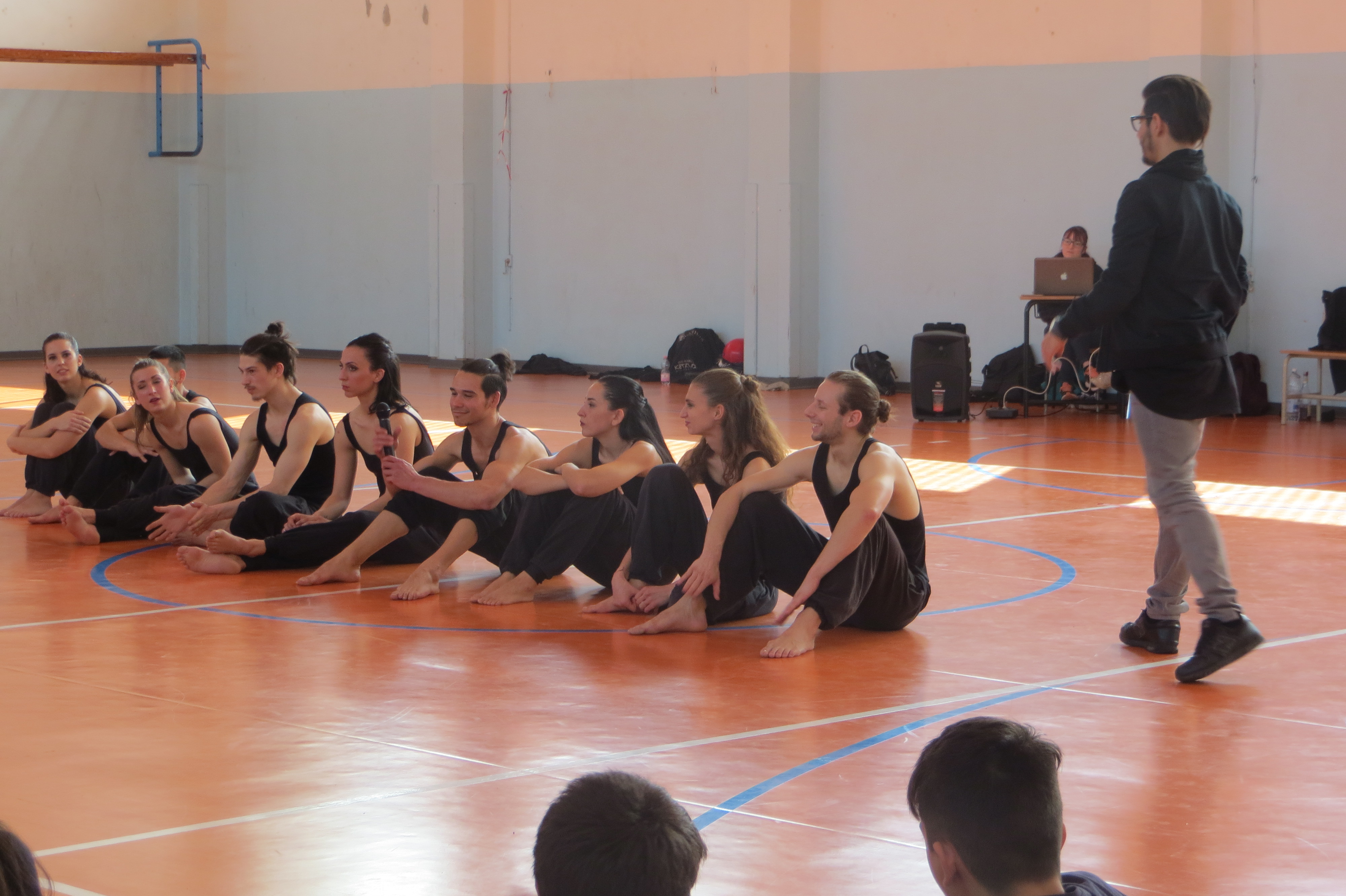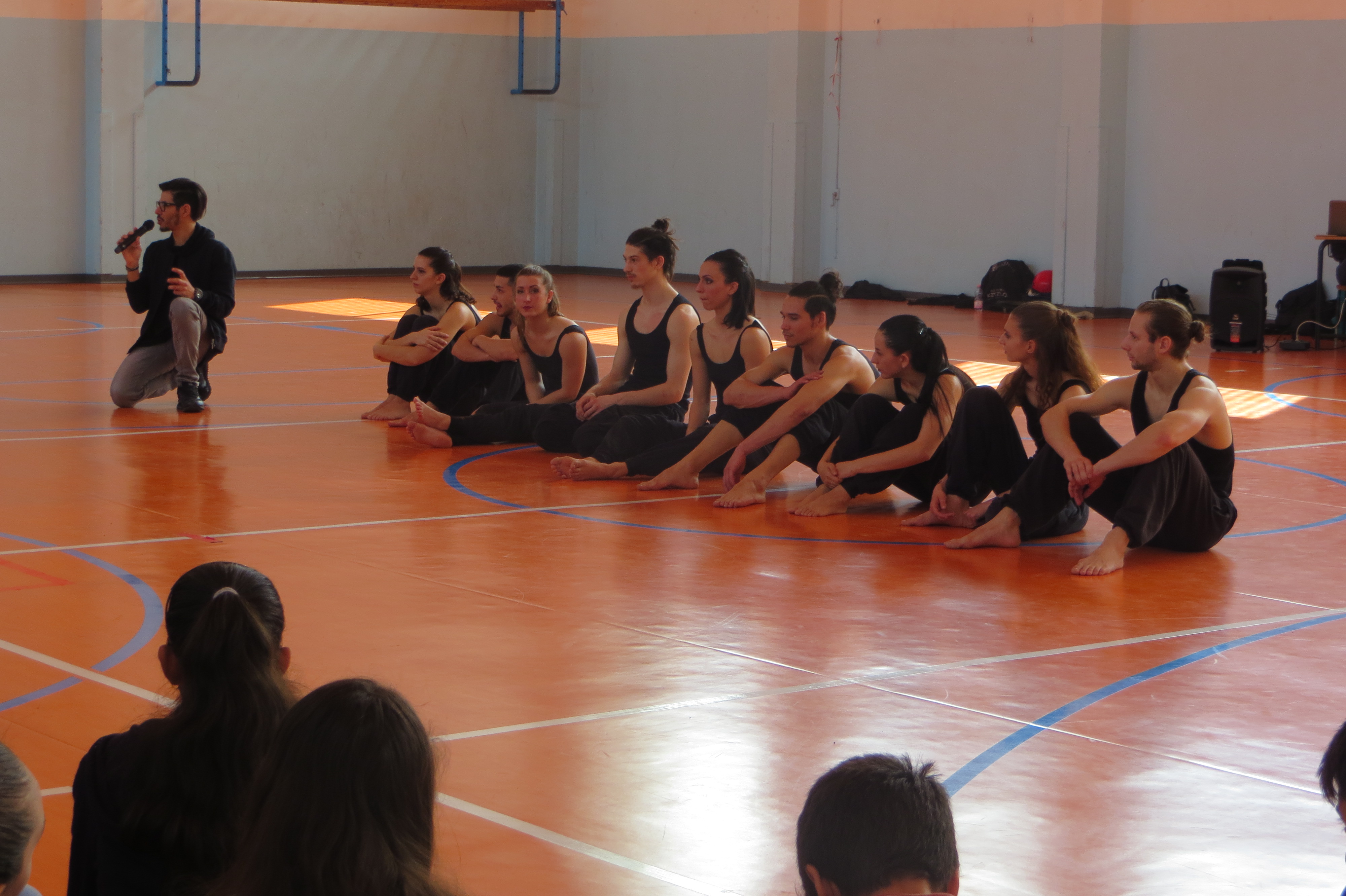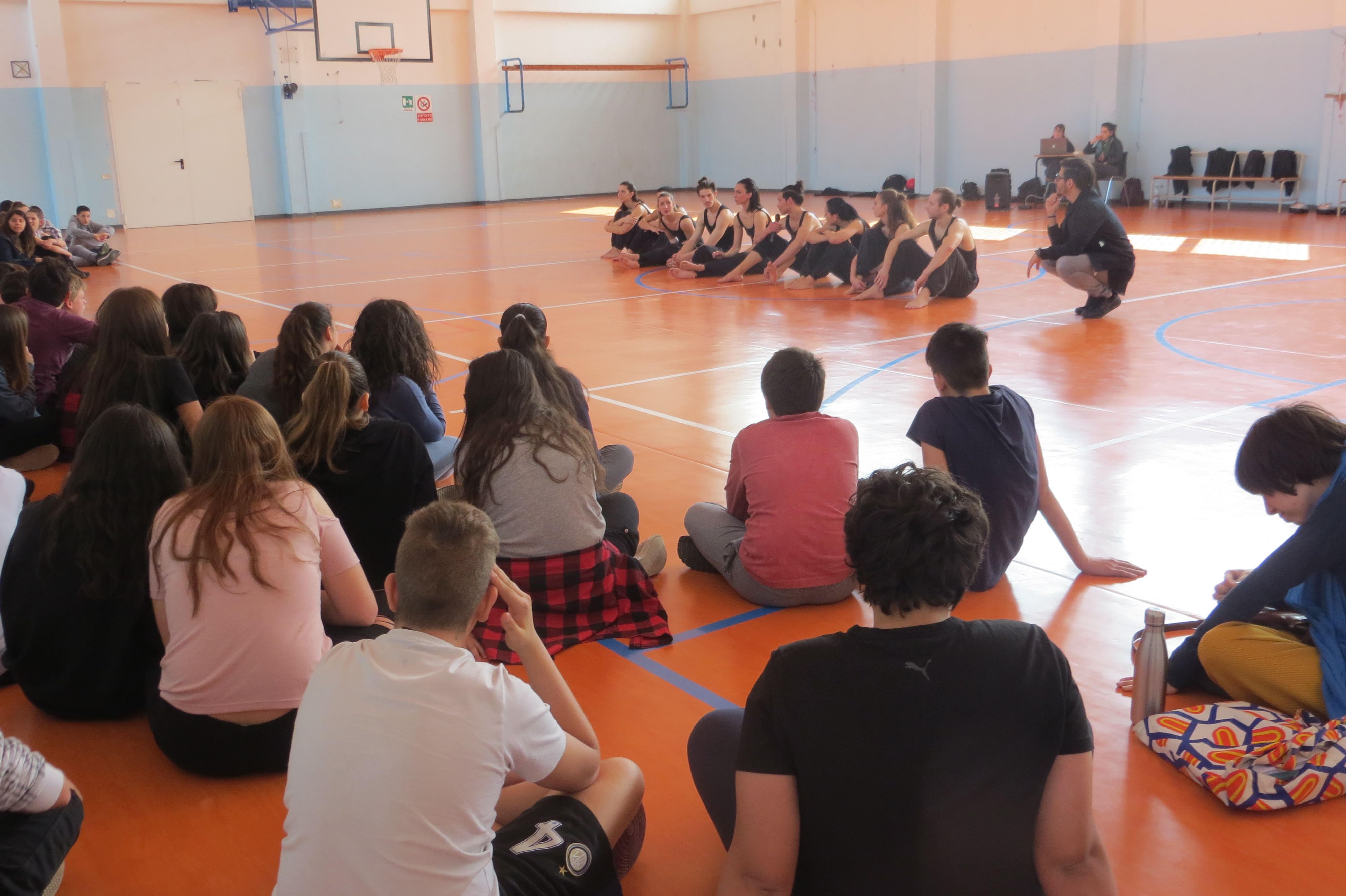 Come da tradizione annuale, oggi, nella palestra della scuola secondaria si sono esibiti i Kataklò per gli alunni delle classi terze. La creatività e l’energia produttiva alimentano la produzione dei Kataklò, una compagnia che si esibisce con successo in Italia e all’estero. Il nome Kataklò viene dal greco antico e significa “io ballo piegandomi e contorcendomi”. Lo stile dei Kataklò si basa sin dagli esordi sull’alta preparazione atletica e sulla notevole tecnica di danza di tutti gli interpreti, chiamati a mettere in campo versatilità e determinazione per sostenere l’impegnativo training fisico. Grazie all’inconfondibile e spettacolare fusione di danza, atletismo acrobatico, mimica, humor, suoni, luci e costumi, la ricercatezza della scrittura coreografica e teatrale dei Kataklò ha l’emozionante potere di comporre scenari surreali, di creare illusioni e sfidare l’immaginazione, superando ogni confine culturale, linguistico e generazionale. Alla fine dello spettacolo, il gruppo degli artisti-atleti ha risposto alle domande degli alunni incuriositi da questa disciplina motoria-artistica.