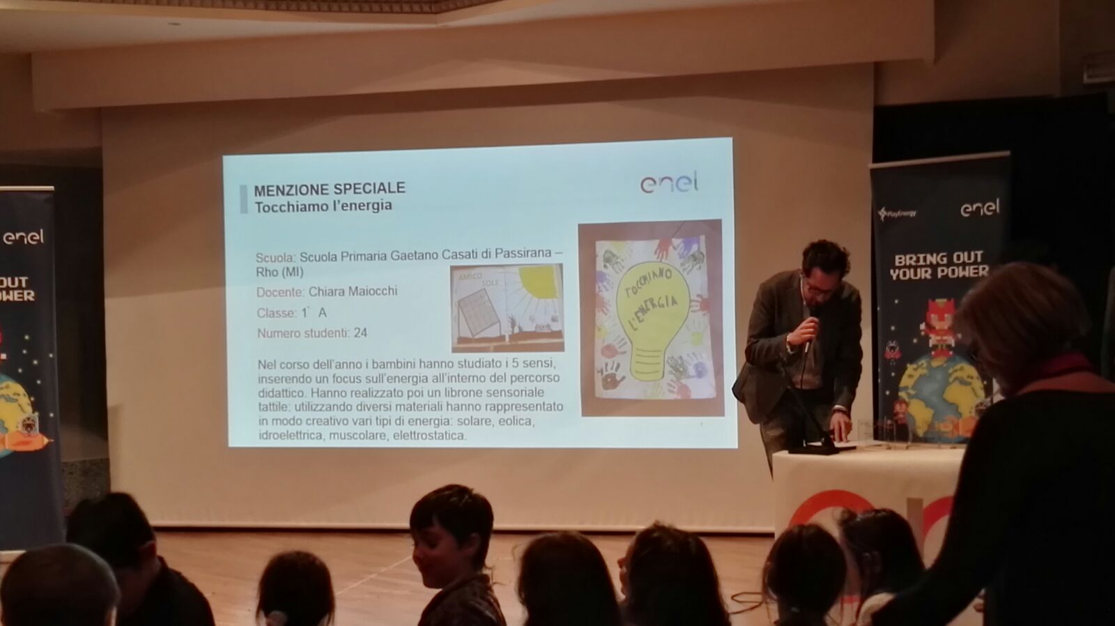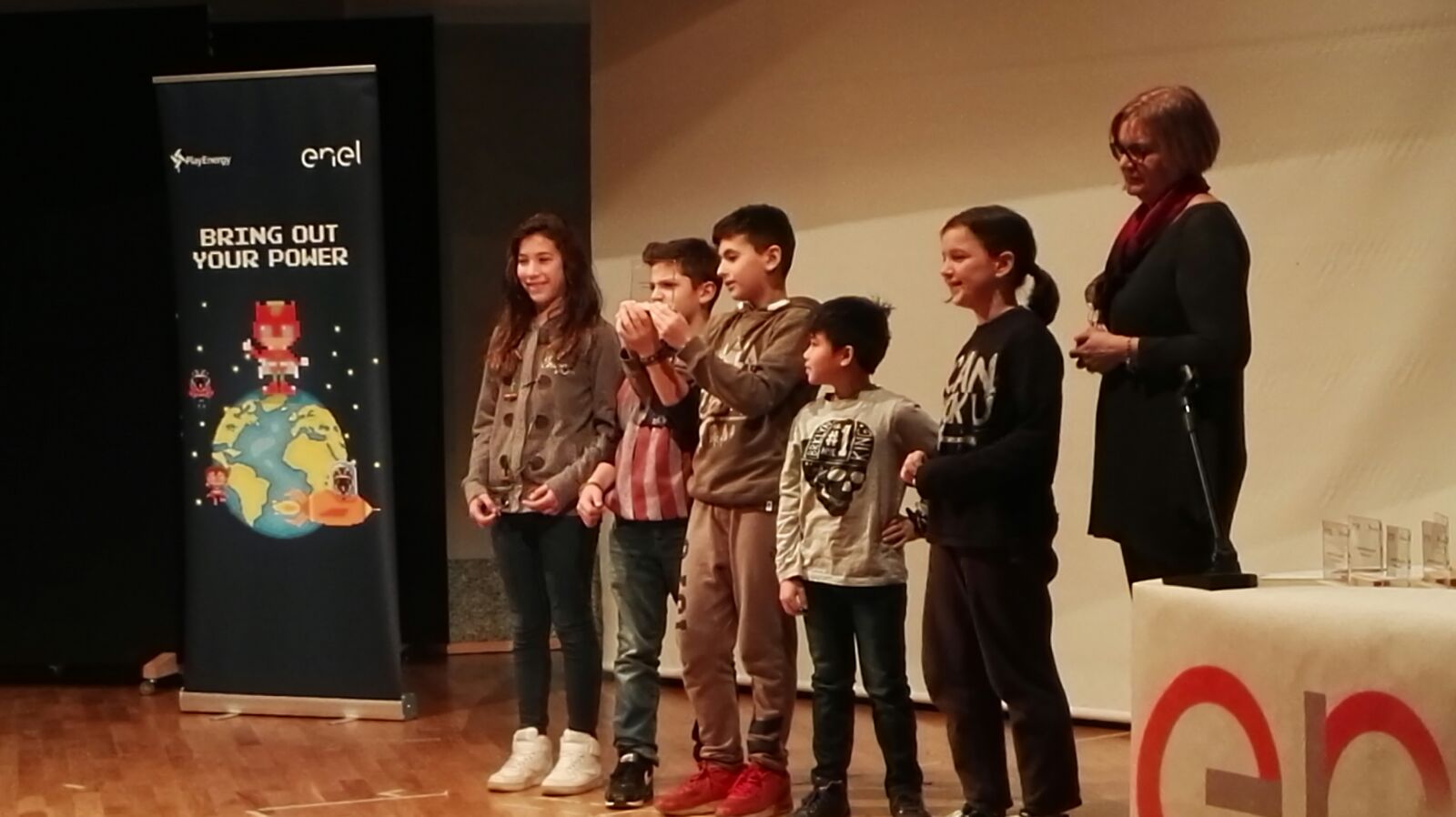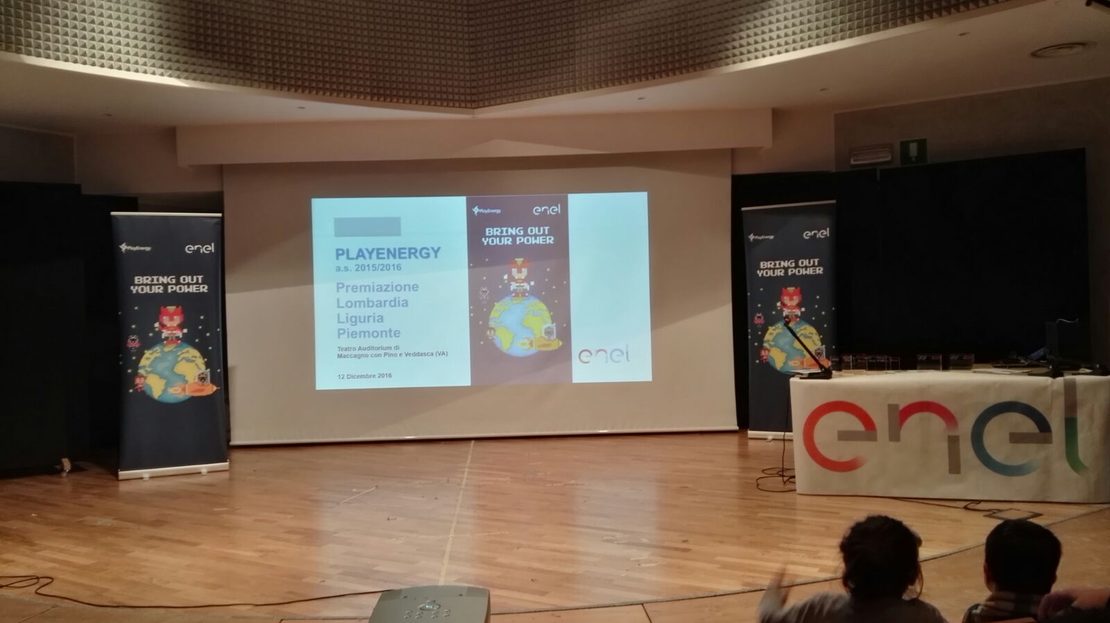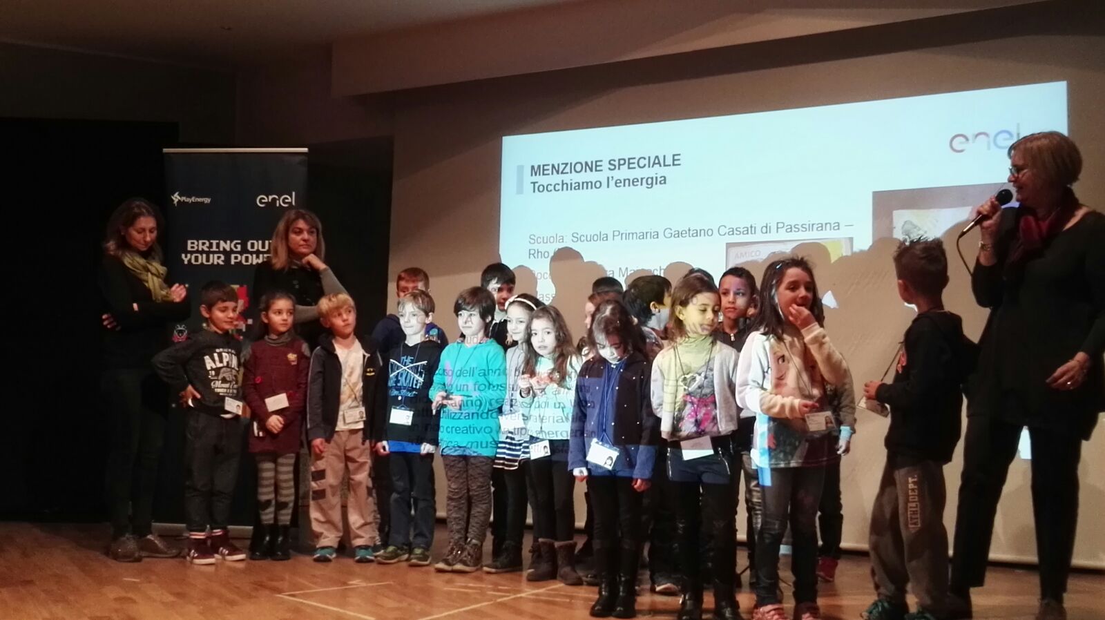 Lunedì 12 dicembre, la classe seconda del plesso G. Casati e alcuni alunni delle classi prime della scuola secondaria quale rappresentanza della classe quinta del plesso S. Zennaro e del plesso G. Rodari (anno scolastico 2015/2016) con le relative docenti e la presenza del Dirigente scolastico, si sono recati dall’Auditorium Città di Maccagno (Varese) per la premiazione degli elaborati prodotti in riferimento al progetto Play Energy, la proposta formativa che Enel, lo scorso anno scolastico, ha dedicato agli studenti di Lombardia, Liguria, Piemonte per promuovere la conoscenza del mondo dell’energia attraverso il linguaggio e le tematiche delle scienze.