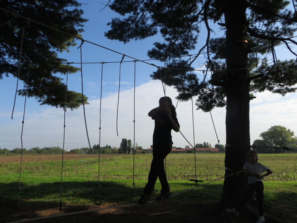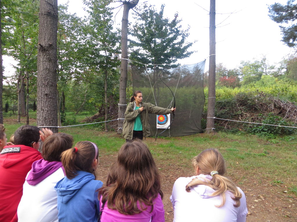 Accompagnati dai docenti, gli alunni hanno realizzato insieme agli istruttori della FISSS (Federazione Italiana Survival Sportivo e Sperimentale) un percorso dinamico-naturalistico con esercizi di equilibrio con passaggi in corda, attraversamento di ponti sospesi (tipo tibetano, tirolese e thailandese), percorso in un labirinto vietnamita, tiro con l’arco e giavellotto, con la costruzione di un riparo e la illustrazione delle modalità di accensione di un fuoco nel bosco, senza recare danni a sé e all’ambiente circostante. Durante il pomeriggio, insieme agli specialisti e ai docenti, i ragazzi hanno attuato un percorso educativo-didattico dedicato alla osservazione e alla classificazione delle specie arboree, con raccolta di materiale nel bosco. La classe a tempo prolungato della scuola secondaria ha la possibilità di avere più ore a disposizione per l’arricchimento e l’approfondimento dell’offerta formativa. In questo caso, le attività motorie e scientifiche sono state così realizzate “sul campo”, “dentro la natura”, non solo sui libri o nelle aule e laboratori scolastici.