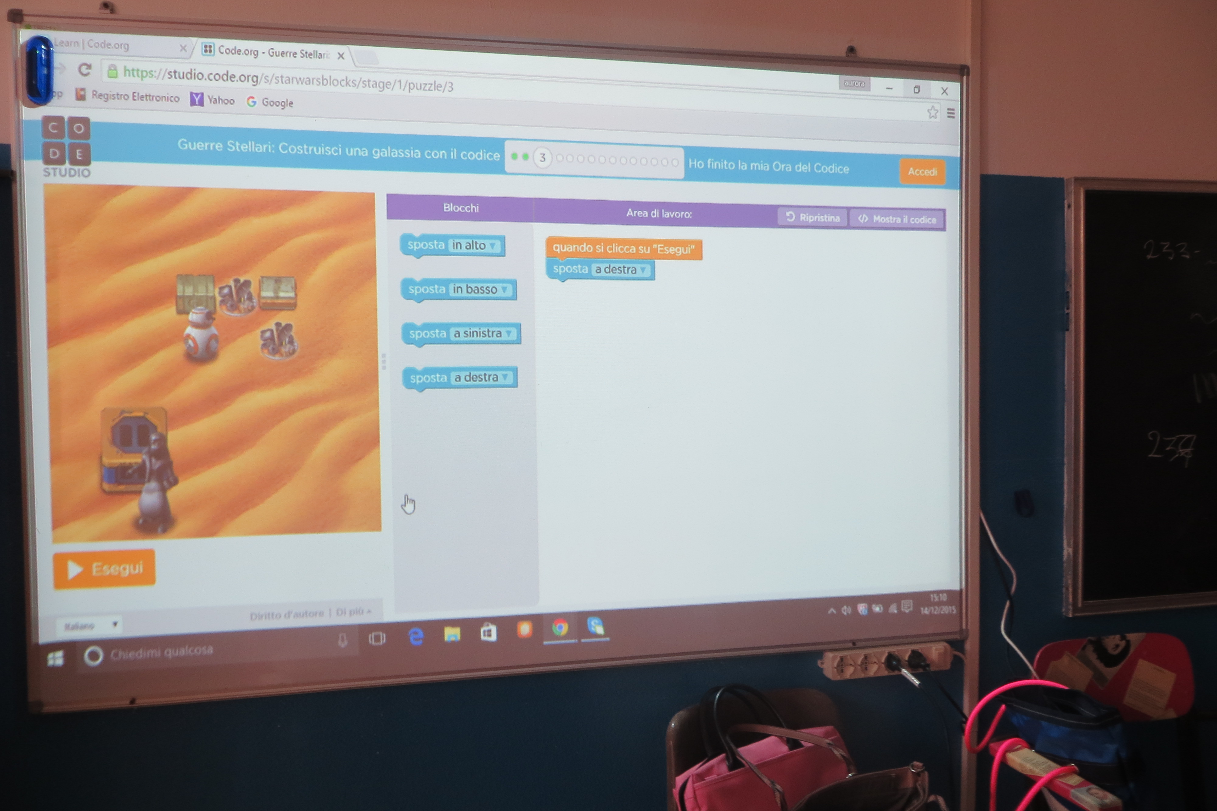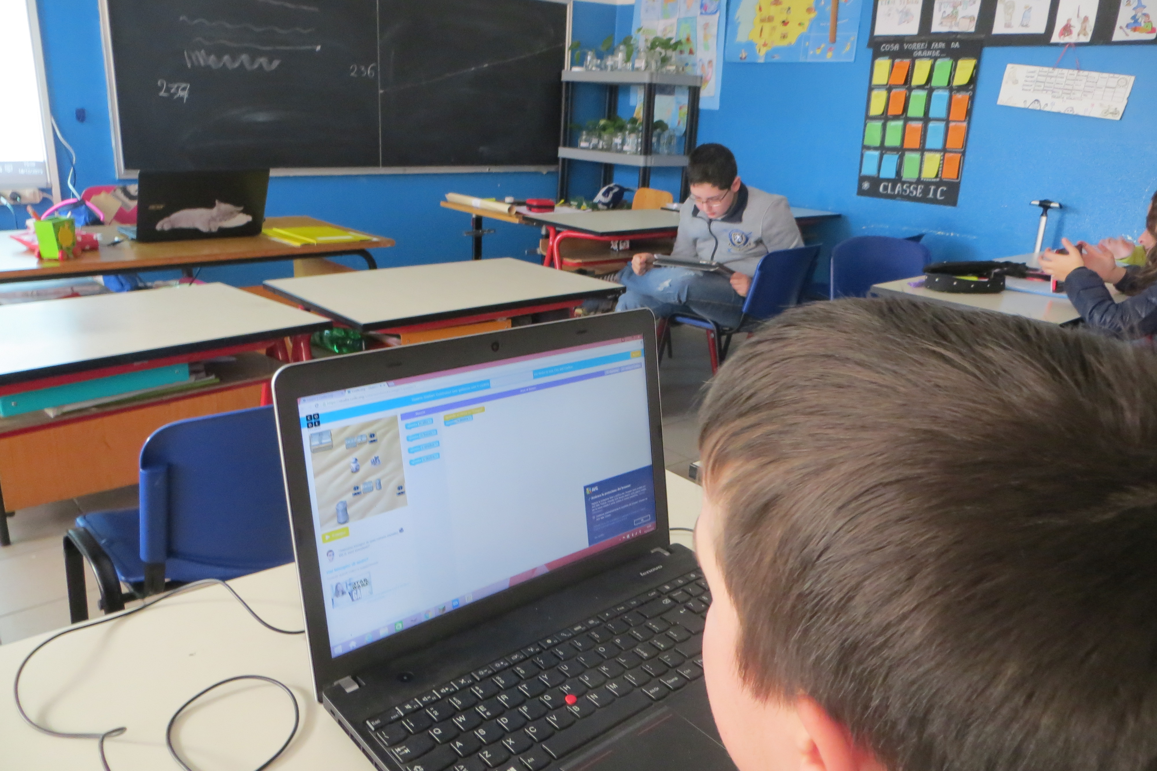 Oggi 14 dicembre, è iniziata nella classe I C del tempo prolungato della scuola secondaria, l’ora di lezione di coding. Gli alunni imparano a risolvere problemi complessi applicando la logica del paradigma informatico anche attraverso modalità ludiche. Per “coding” si intende, in informatica, la stesura di un programma, cioè le sequenze di istruzioni che, eseguite da un calcolatore, danno vita alla maggior parte delle meraviglie digitali che usiamo quotidianamente. Si insegnano così, ai ragazzi, alcuni elementi per la programmazione: alla fine, gli alunni dovranno essere in grado, non di usare un computer, ma di produrre piccoli programmi come videogiochi o brevi sequenze, sul modello di quanto avviene già in molte scuole straniere, soprattutto anglosassoni. Oggi è stata realizzata una piccola gara: gli alunni si sono collegati al sito code.org, hanno scelto il loro gioco da programmare, il livello di difficoltà e hanno iniziato la programmazione, cioè hanno inserito i movimenti da far eseguire al personaggio scelto e gli obiettivi da perseguire. Programmati tutti i livelli del gioco, all’alunno veniva consegnato virtualmente il Certificato di completamento dell’Ora di coding.