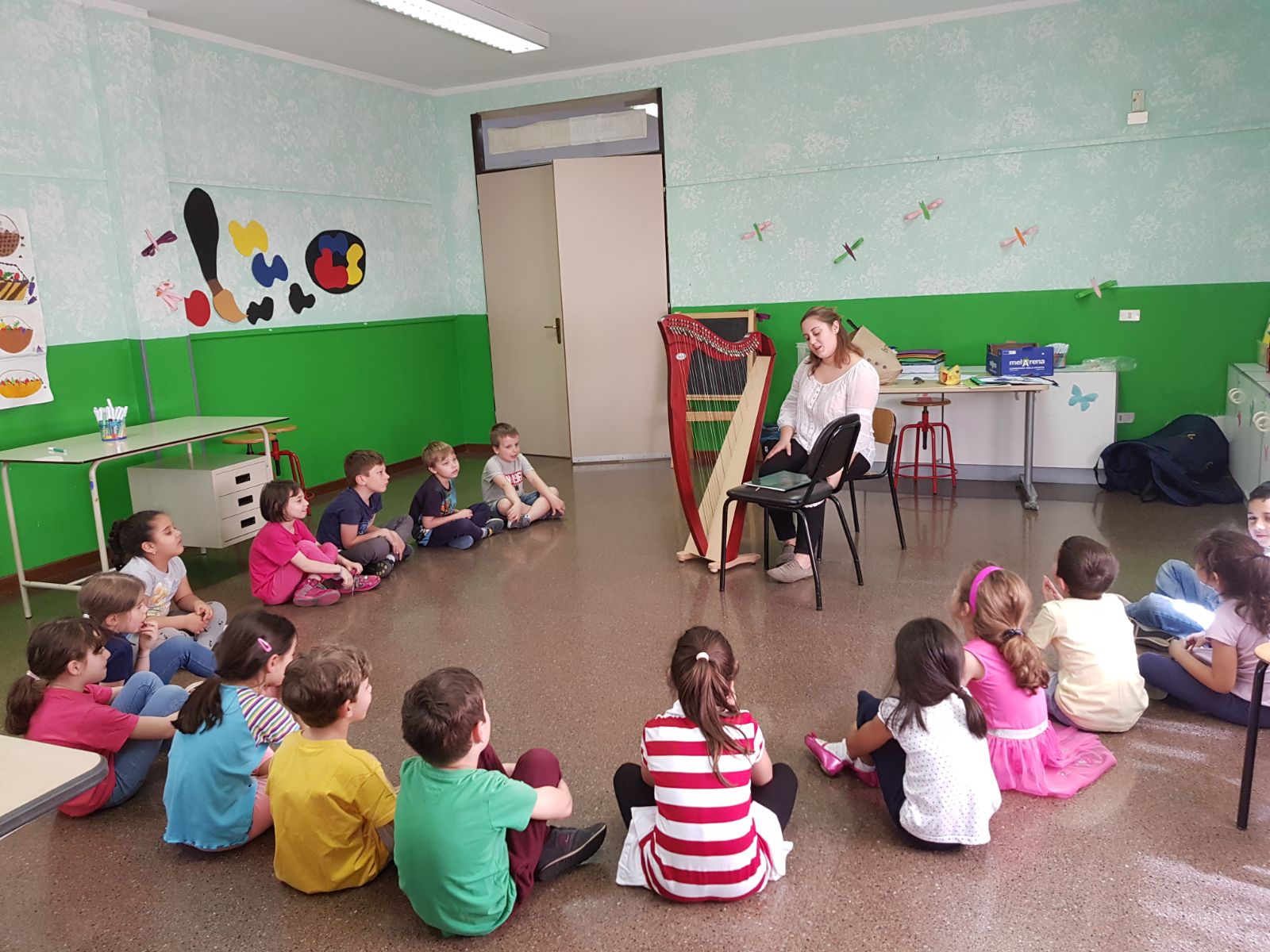 Il 23 aprile, il 24 aprile e il 2 maggio, nell’ambito del progetto d’Istituto “Natural…mente lettori”, gli alunni delle classi prime delle scuole primarie hanno incontrato la musicista Alessandra Severini. L’incontro è cominciato con un momento di presentazione generale dei protagonisti di una favola liberamente tratta da “Le storie del bosco” di T. Wolf, seguito da un lavoro a gruppi sui principali personaggi. Poi, con la collaborazione dei piccoli, l’esperta ha narrato la storia alternando la lettura a momenti di ascolto di brani dal vivo, eseguiti con l’arpa. L’esperienza ha permesso agli alunni di approfondire le tematiche affrontate sul tema che caratterizza il nostro progetto d’istituto, ha contribuito positivamente ad avvicinarli al mondo dei libri e a trasmettere loro il piacere della lettura.